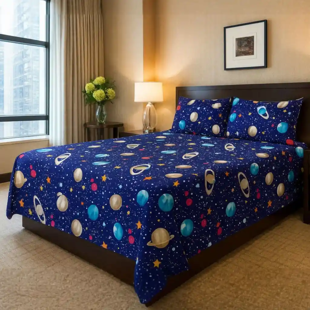 Convierte tu habitación en un espacio lleno de vida, frescura y alegría con este hermoso juego de sábanas en microfibra, diseñado especialmente para quienes buscan confort, suavidad y un estilo único que enamora a primera vista. Diseño encantador y vibrante El estampado en colores vivos llena tu cama de energía positiva y diversión. Cada detalle está pensado para transmitir ligereza y vitalidad, creando un ambiente acogedor y moderno que alegra tus días y noches. Incluye todo lo que necesitas Este juego completo está compuesto por: 1 sábana ajustable con elástico en todo el contorno, que se adapta perfectamente a tu colchón y lo mantiene protegido. Medidas: 1.40 x 1.90 x 28 cm. 1 sobre sábana ligera, fresca y de caída suave para un descanso placentero. Medidas. 1.96 x 2.18 cm. 2 fundas para almohadas con el mismo diseño estampado, para que tu cama luzca siempre coordinada y espectacular. Medidas: 70 x 50 cm. Comodidad que se siente Fabricado en microfibra premium de alta calidad, un material reconocido por su suavidad sedosa, resistencia y durabilidad. No se arruga fácilmente, no forma motas y conserva los colores brillantes lavado tras lavado. Además, es ideal para climas cálidos y fríos gracias a su frescura y capacidad de mantener la temperatura agradable. Beneficios principales: - Tela hipoalergénica y amigable con la piel. - Fácil de lavar y de secado rápido. - Colores intensos que no se desvanecen. - Ajuste perfecto al colchón sin deslizarse. - Diseño alegre y versátil que combina en cualquier habitación. Perfecto para regalar Este juego de sábanas no solo es ideal para tu hogar, sino también una excelente opción para sorprender a familiares y amigos. Un regalo útil, hermoso y lleno de estilo. Duerme rodeado de color, estilo y comodidad con este Juego de Sábanas en Microfibra de colores. ¡Tu habitación nunca se verá igual!