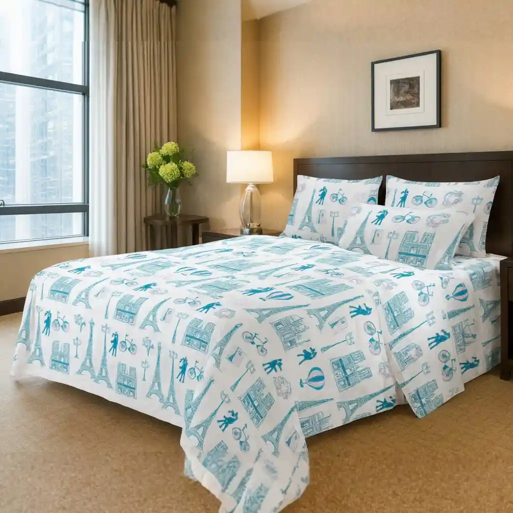 Convierte tu habitación en un espacio lleno de vida, frescura y alegría con este hermoso juego de sábanas en microfibra, diseñado especialmente para quienes buscan confort, suavidad y un estilo único que enamora a primera vista. Diseño encantador y vibrante El estampado en colores vivos llena tu cama de energía positiva y diversión. Cada detalle está pensado para transmitir ligereza y vitalidad, creando un ambiente acogedor y moderno que alegra tus días y noches. Incluye todo lo que necesitas Este juego completo está compuesto por: 1 sábana ajustable con elástico en todo el contorno, que se adapta perfectamente a tu colchón y lo mantiene protegido. Medidas: 1.40 x 1.90 x 28 cm. 1 sobre sábana ligera, fresca y de caída suave para un descanso placentero. Medidas. 1.96 x 2.18 cm. 2 fundas para almohadas con el mismo diseño estampado, para que tu cama luzca siempre coordinada y espectacular. Medidas: 70 x 50 cm. Comodidad que se siente Fabricado en microfibra premium de alta calidad, un material reconocido por su suavidad sedosa, resistencia y durabilidad. No se arruga fácilmente, no forma motas y conserva los colores brillantes lavado tras lavado. Además, es ideal para climas cálidos y fríos gracias a su frescura y capacidad de mantener la temperatura agradable. Beneficios principales: - Tela hipoalergénica y amigable con la piel. - Fácil de lavar y de secado rápido. - Colores intensos que no se desvanecen. - Ajuste perfecto al colchón sin deslizarse. - Diseño alegre y versátil que combina en cualquier habitación. Perfecto para regalar Este juego de sábanas no solo es ideal para tu hogar, sino también una excelente opción para sorprender a familiares y amigos. Un regalo útil, hermoso y lleno de estilo. Duerme rodeado de color, estilo y comodidad con este Juego de Sábanas en Microfibra de colores. ¡Tu habitación nunca se verá igual!