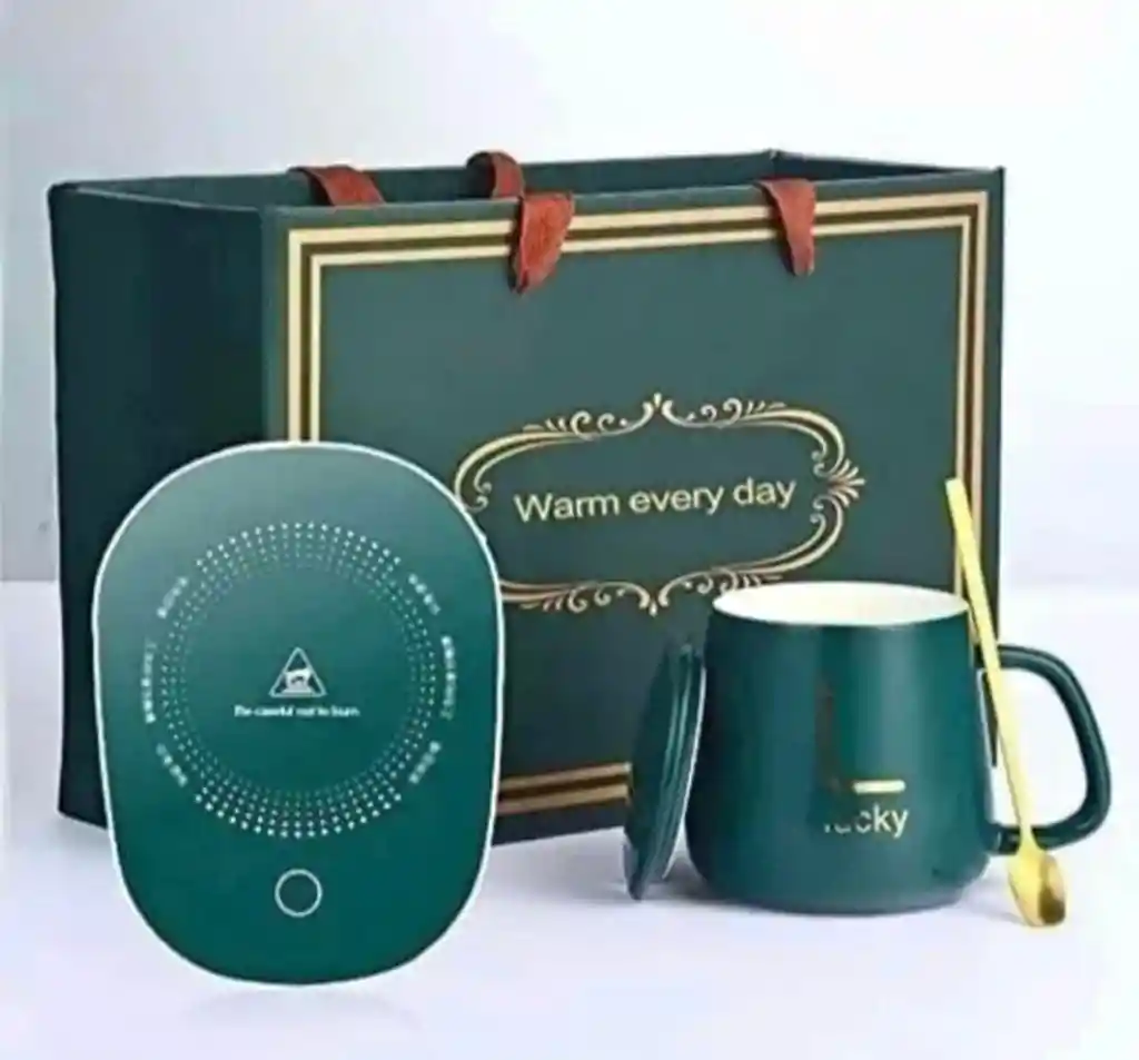 TAZA CON CALEFACCIÓN Si a menudo hace bebidas, pero hasta que olvida beber y beber frío o no calientar, no tiene que preocuparse porque el calentador automático/eléctrico de bebidas está disponible, incluidos los vaso y cuchara de cerámica. Este calentador se puede usar para calentar biberones y otras bebidas , incluidos café, agua de jengibre, agua tibia, té, etc. Energía eléctrica de 16 vatios Material de calefacción del calentador: Vidrio Material de la taza de la taza: Cerámica Material de la cuchara: inoxidable dorado. Talla Taza : -/+ 400 ml Descripción de la taza de cerámica Nota: 1 juego de taza incluye panel calentador de agua y cuchara. Color: VERDE