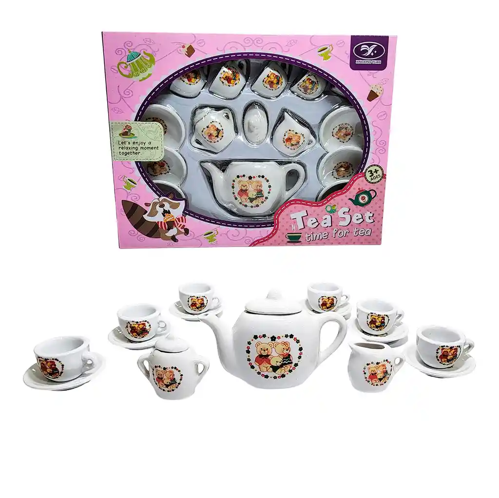¡Invita a tus amigos, muñecos y peluches a la fiesta de té más tierna y encantadora con nuestro exquisito Juego de Té de Cerámica en miniatura! Este set de estilo clásico, delicadamente fabricado y adornado con un adorable diseño de ositos de peluche, es perfecto para inspirar horas de juego elegante e imaginativo. Cada completísimo juego incluye una tetera con tapa, un azucarero, una cremera, múltiples tazas con sus platillos y platos adicionales, todo lo necesario para que los pequeños anfitriones sirvan con orgullo a todos sus invitados. Es el regalo ideal para fomentar la creatividad, las habilidades sociales y los buenos modales, convirtiendo cualquier tarde en un recuerdo precioso y lleno de dulce compañía. Ficha Técnica: Dimensiones del empaque : 23 cm x 18 cm x 5 cm Material: Porcelana Edad Recomendada: +3 Años Certificado de conformidad: E5-0359-2021 Referencia: 868-G4 Para defectos de fábrica o retractos: Por favor revise el producto apenas lo reciba y antes de usarlo. No aplican ley de retracto o defectos de fábrica luego de usar el producto. Se manejan máximo 5 días para reportar defectos de fábrica (por ejemplo, producto funciona mal, piezas faltantes, rotas, etc). Para hacer efectiva la devolución el producto debe devolverse con el empaque original, el cual debe estar en buen estado, incluir todos los documentos y las partes completas y sin daños.
