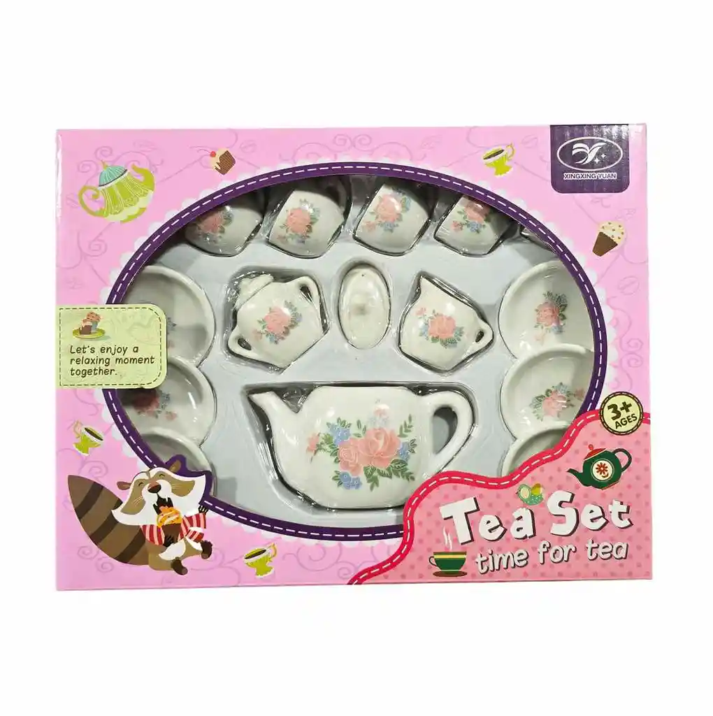 Sumérgete en un mundo de elegancia y tradición con nuestro exquisito Juego de Té de Cerámica en miniatura. Delicadamente adornado con un clásico y hermoso diseño floral de rosas, este set es la invitación perfecta para las fiestas de té más memorables y refinadas. Cada pieza ha sido fabricada con un acabado de cerámica brillante, e incluye todo lo necesario para ser el anfitrión perfecto: una tetera con tapa, un azucarero, una cremera y un juego de tazas con sus platillos a juego. Ideal para fomentar la imaginación, las habilidades sociales y los buenos modales, este set atemporal es mucho más que un juguete; es una oportunidad para crear preciosos recuerdos mientras se comparte una taza de té imaginaria con amigos, familiares y muñecos favoritos. Ficha Técnica: Dimensiones del empaque : 27 cm x 21 cm x 4 cm Material: Porcelana Edad Recomendada: +3 Años Certificado de conformidad: E5-0359-2021 Referencia: 868-G4 Para defectos de fábrica o retractos: Por favor revise el producto apenas lo reciba y antes de usarlo. No aplican ley de retracto o defectos de fábrica luego de usar el producto. Se manejan máximo 5 días para reportar defectos de fábrica (por ejemplo, producto funciona mal, piezas faltantes, rotas, etc). Para hacer efectiva la devolución el producto debe devolverse con el empaque original, el cual debe estar en buen estado, incluir todos los documentos y las partes completas y sin daños.