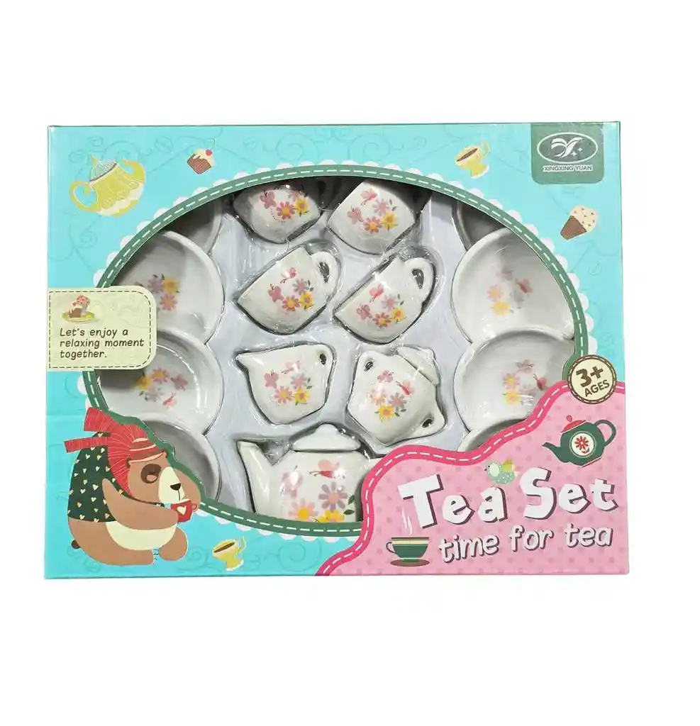 ¡Es la hora de la fiesta de té más encantadora con nuestro exquisito Juego de Té de Cerámica en miniatura! Este set maravillosamente detallado, adornado con un delicado y colorido diseño de flores y mariposas, es perfecto para inspirar horas de juego imaginativo y elegante. Cada set completo incluye una tetera con tapa, un azucarero, una jarra de leche, y cuatro tazas con sus respectivos platos, todo lo necesario para que los pequeños anfitriones sirvan a sus invitados, ya sean amigos, familiares o sus muñecos favoritos. Fabricado con un hermoso acabado liso, este juego no solo fomenta la creatividad y las habilidades sociales, sino que también añade un toque de encanto clásico a la sala de juegos, creando recuerdos preciosos y refinados en cada sorbo imaginario. Ficha Técnica: Dimensiones del empaque : 23 cm x 18 cm x 5 cm Material: Porcelana Edad Recomendada: +3 Años Certificado de conformidad: E5-0359-2021 Referencia: 868-E5 Para defectos de fábrica o retractos: Por favor revise el producto apenas lo reciba y antes de usarlo. No aplican ley de retracto o defectos de fábrica luego de usar el producto. Se manejan máximo 5 días para reportar defectos de fábrica (por ejemplo, producto funciona mal, piezas faltantes, rotas, etc). Para hacer efectiva la devolución el producto debe devolverse con el empaque original, el cual debe estar en buen estado, incluir todos los documentos y las partes completas y sin daños.