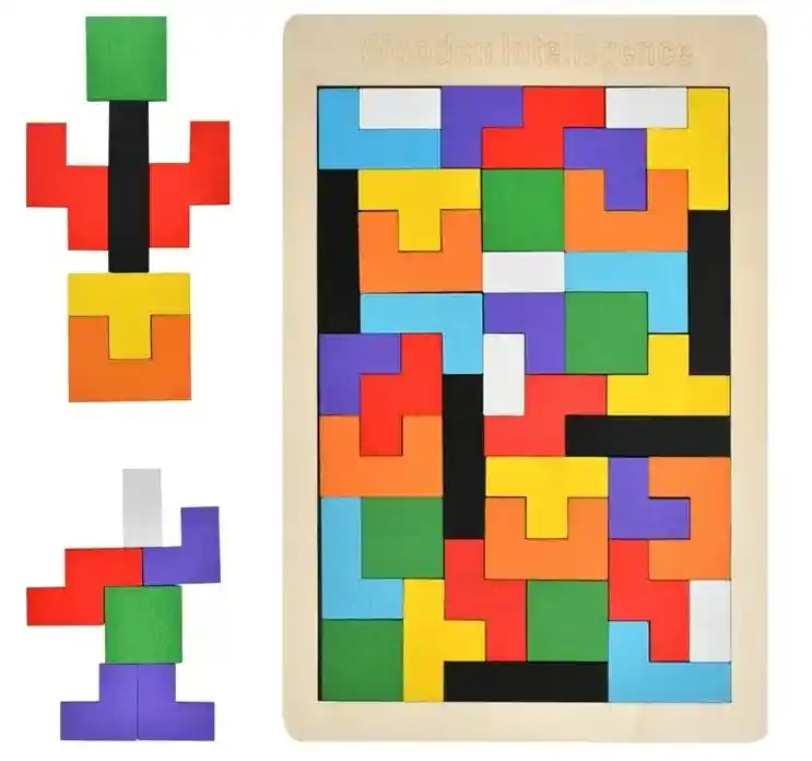 Usos y Beneficios Didácticos El Tetris en madera es más que un simple pasatiempo es una herramienta educativa valiosa: Desarrollo de la Lógica y la Estrategia: Fomenta el pensamiento crítico y la planificación, ya que cada movimiento afecta las opciones futuras para colocar las piezas restantes. Habilidades Espaciales: Ayuda a mejorar la percepción visual y la capacidad de rotar mentalmente objetos para determinar su mejor posición (visual-spatial reasoning). Motricidad Fina: La manipulación física de las piezas de madera ayuda a desarrollar la destreza manual y la coordinación ojo-mano. Concentración y Paciencia: Es un juego que requiere enfoque para resolver el desafío de encajar todas las piezas correctamente.