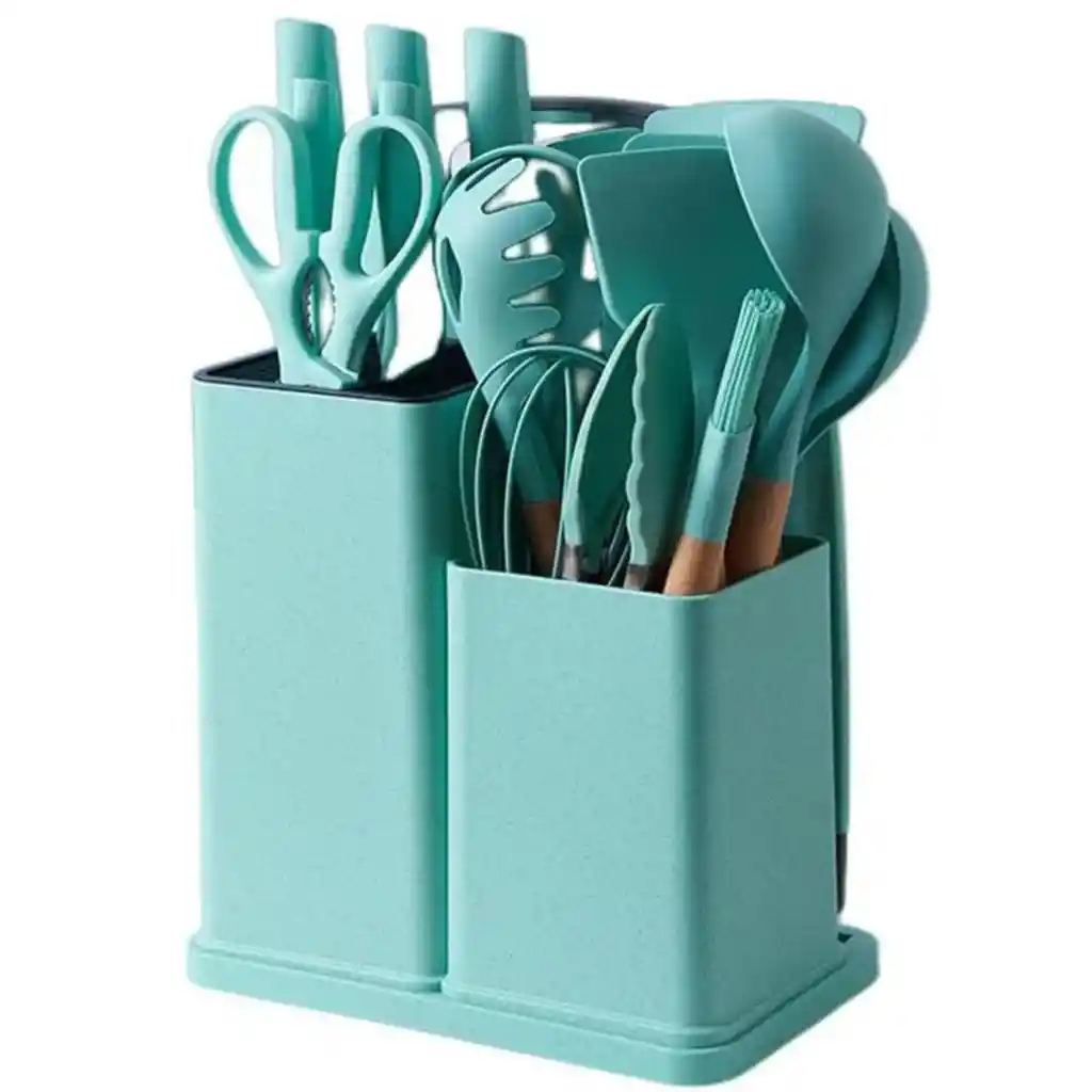 Somos TELEPRODUCTOS BOGOTA Productos 100% garantizados, años de experiencia en ventas online.! -Cuando realices la compra recibirás toda la información de contacto y datos para que puedas hacer seguimiento a tu producto.! ----------------------------------------------------------------------------------------------------------------------- Satisface todas tus necesidades de la cocina: juego de utensilios de cocina 19 en 1, juego de utensilios de cocina de silicona y accesorios de cocina para satisfacer tu máxima demanda, sea tu asistente de cocina. Juego de cuchillos 5 en 1: incluye cuchillo de chef de 8 pulgadas, cuchillo de pelar de 3.5 pulgadas, cuchillo de pan de 8 pulgadas, cuchillo de rebanar de 8 pulgadas, cuchillo multiusos de 5 pulgadas, soporte para cuchillos de almacenamiento conveniente de cuchillos de cocina. Juego de utensilios de cocina de silicona de 11 piezas: el juego de utensilios de cocina está hecho de silicona altamente duradera. Incluye cucharón de sopa profunda. Cuchara de servir. Cuchara ranurada. Turner ranurado. Servidor de pasta. Espátula flexible. Brocha para hilvanar. Batir. Pinzas. Espátula redonda. Turner. CALIDAD: Cuchillas superiores de acero inoxidable de alto carbono para una precisión que garantizan que las cuchillas conserven su borde ultra afilado y precisión precisa para cortar alimentos. Materiales de calidad y resistentes al calor: el juego de utensilios de cocina está hecho de silicona altamente duradera. Los utensilios de cocina pueden soportar temperaturas de hasta 480 °F. Mango de silicona anti quemaduras que protege tu mano de quemaduras. Utensilios de cocina antiadherentes de seguridad. Garantía del vendedor: 30 días