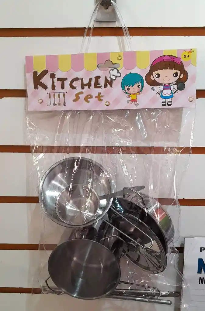 Un juego de utensilios de cocina metálicos será un complemento perfecto para la cocina de cualquier niño. El paquete incluye un conjunto de utensilios necesarios para cocinar. Todos los productos son imitaciones de productos industriales reales. Un juego de utensilios de cocina metálicos puede ser con éxito una extensión de otros juegos de cocina de juguete que ya tenemos por casa. Jugar con el set proporcionará mucha diversión a los más pequeños e influirá positivamente en el correcto desarrollo del niño estimulando la imaginación. Todos los productos se colocan en un paquete transparente con asa, lo que los hace perfectamente visibles. CONTIENE: 9 Piezas