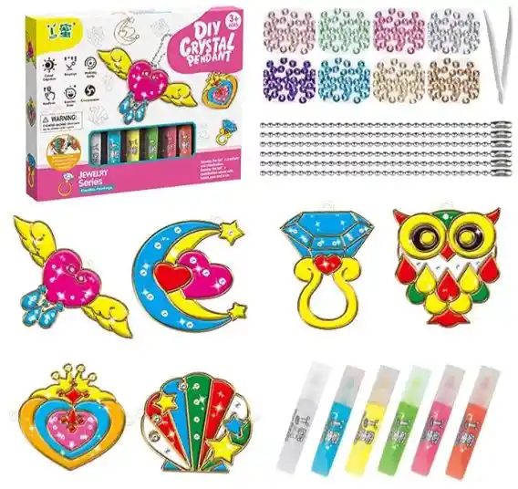 Es un set que incluye piezas translúcidas de diversos colores (como formas para encajar o pegar), y a veces bases transparentes o marcos donde se colocan estas piezas para formar composiciones.