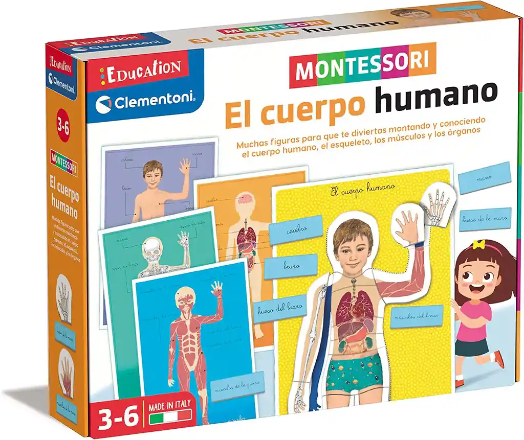 Empaque de regalo sin costo adicional, escríbenos al finalizar la compra. 3 años + ¡Descubre el fascinante mundo del cuerpo humano con nuestro increíble juego! Este emocionante juguete te llevará en un viaje de descubrimiento para conocer cómo es el cuerpo por fuera y por dentro, y aprender los nombres de las partes que lo componen. En la caja, encontrarás un tablero especialmente diseñado donde podrás colocar los elementos de cartón que representan las distintas partes del cuerpo. Este proceso de reconstrucción te permitirá explorar el cuerpo desde diferentes perspectivas: la vista externa, el esqueleto, los músculos y los órganos. Con la ayuda de los cartelitos de lectura y las fichas didácticas incluidas, los niños podrán aprender la nomenclatura precisa de cada parte del cuerpo. Al relacionar los cartelitos con los elementos correspondientes, se fomenta una comprensión completa y detallada de la anatomía humana. Además de su valor educativo, este juego también promueve el desarrollo de habilidades cognitivas y motoras. Los niños mejorarán su capacidad de observación, su coordinación mano-ojo y su memoria mientras exploran y aprenden sobre el cuerpo humano. Inspirado en el plan de estudios inspirado en Montessori, con piezas de rompecabezas de autocorrección que tienen pistas de colores y motiva el aprendizaje autodirigido. Hecho en Italia. Todas las piezas están construidas con cartón laminado de alta calidad; y está hecho para soportar las caídas del juego diario. Tamaño: 34 x 27 x 6cm