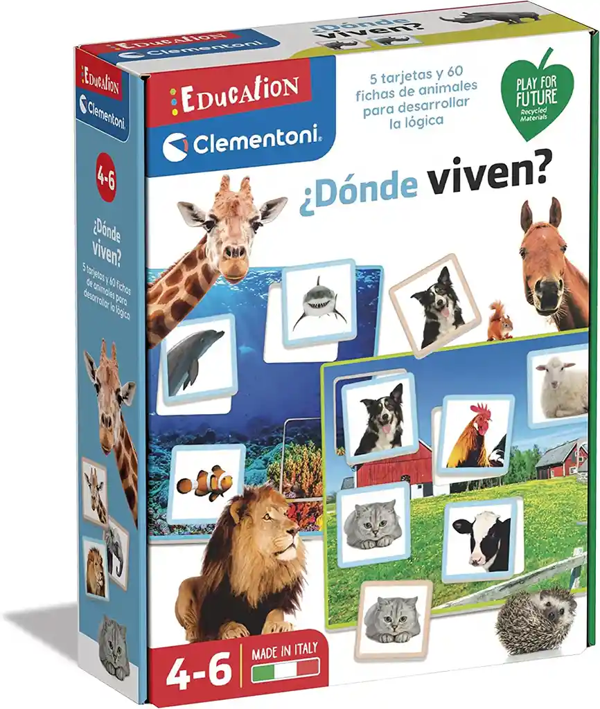 Empaque de regalo sin costo adicional, escríbenos al finalizar la compra. 4 años + Sumérgete en el emocionante mundo de los animales con este divertido juego diseñado para niños y niñas de todas las edades. Con 5 láminas de ambientes vibrantes y 60 tarjetas de animales, este juego ofrece una experiencia educativa y entretenida. Las tarjetas del juego se dividen en diferentes temas basados en el entorno en el que viven los animales, como la selva, el océano, la granja y más. Cada tarjeta muestra una ilustración hermosa y colorida de un animal, junto con su nombre en español. El objetivo del juego es simple: los jugadores deben observar cuidadosamente las láminas de ambiente y asociar las tarjetas de animales correspondientes a su hábitat adecuado. Con cada coincidencia exitosa, los niños aprenderán sobre los diferentes animales y su entorno natural. Inspirado en el plan de estudios inspirado en Montessori, con piezas de rompecabezas de autocorrección que tienen pistas de colores y motiva el aprendizaje autodirigido. Hecho en Italia. Todas las piezas están construidas con cartón laminado de alta calidad; y está hecho para soportar las caídas del juego diario. Tamaño: 23 x 18 x 7cm