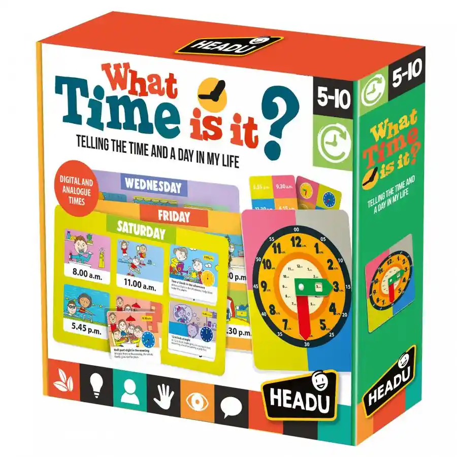 Empaque de regalo sin costo adicional, escríbenos al finalizar la compra. 4 años + Qué Hora es es un emocionante juego de bingo del tiempo diseñado para ayudar a los niños a aprender a leer y decir la hora en horas y minutos, tanto en relojes analógicos como digitales. A través de divertidas ilustraciones de personajes realizando diferentes actividades a lo largo del día, los niños practicarán su lectura y comprensión del tiempo mientras se divierten jugando al bingo. En Qué Hora es, los niños recibirán tarjetas de bingo con diferentes horas y minutos representados en relojes analógicos y digitales. A medida que se vayan mostrando las cartas de actividades y momentos del día, los niños deberán buscar en sus tarjetas el reloj que muestre la hora correcta. Este juego les permitirá practicar la lectura del tiempo de una manera interactiva y entretenida. Además de aprender a leer y decir la hora, los niños también desarrollarán habilidades de observación, concentración y coordinación. Al buscar y marcar las horas correctas en sus tarjetas de bingo, los niños ejercitarán su capacidad de atención y mejorarán su destreza visual. Una actividad inspirada en Montessori que promueve el aprendizaje autodirigido y la autocorrección. ¡Haga clic aquí para obtener una guía detallada para maximizar el valor de juego de este excelente conjunto de aprendizaje temprano! Desarrolla: • Inteligencia naturalista • Habilidades de observación • Razonamiento espacial y pensamiento lógico • Expansión del vocabulario • Habilidades lingüísticas Headu adopta las Múltiples Formas de Inteligencias de Howard Gardner y construye meticulosamente el valor de aprendizaje de sus rompecabezas para abarcar Múltiples Modalidades de Aprendizaje para una experiencia de aprendizaje más holística. Hecho en Italia. Todas las piezas están construidas con cartón laminado de alta calidad; y está hecho para soportar las duras y las caídas del juego diario. El juego incluye: 1 reloj con manecillas, 7 tarjetas "Mi día", 54 cartones de bingo, 12 tarjetas Guess the Time, 1 tablero de bingo, normas Tamaño: 28 x 25 x 7cm