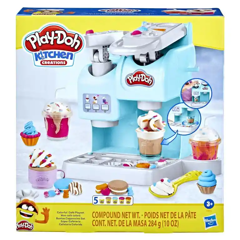 4 años + Con este set de cafetería Play-Doh, los pequeños chefs pueden crear una variedad de postres deliciosos y personalizados. Desde helados hasta cupcakes, la creatividad es ilimitada mientras usan las diferentes herramientas y moldes incluidos. La máquina permite preparar bebidas y postres de manera realista con las coloridas masas Play-Doh. Los niños pueden agregar detalles divertidos y decoraciones utilizando los accesorios y moldes disponibles. Además, el set incluye cinco botes de masa de diferentes colores para dar vida a sus creaciones, fomentando la imaginación y el juego interactivo. Las piezas son fáciles de manipular para que los niños puedan disfrutar de su experiencia culinaria. Este juguete es ideal para el desarrollo de habilidades motoras finas y la coordinación mano-ojo. Los niños se divertirán mientras mezclan colores, crean formas y organizan su propia cafetería. ¡Una experiencia deliciosa y educativa! Tamaño: 32x 30x 10cm
