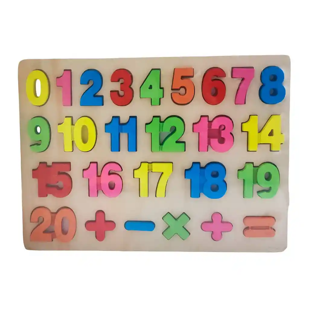 Rompecabezas de madera con números del 0 al 20 y símbolos matemáticos en relieve, diseñado para que los niños aprendan a reconocer cifras y practiquen operaciones básicas de manera divertida; ideal para estimular el razonamiento lógico, la concentración y la motricidad fina mientras disfrutan de un juego educativo colorido e interactivo. Ficha Técnica: Material: Plástico ABS Dimensiones : 30 cm x 21 cm x 1 cm Apto para niños + 3 Años Referencia: 1970-42 Certificado de conformidad: CS-LCO-13233 ** _Para defectos de fábrica o retractos: \_Por favor revise el producto apenas lo reciba y antes de usarlo. No aplican ley de retracto o defectos de fábrica luego de usar el producto. Se manejan máximo 5 días para reportar defectos de fábrica (por ejemplo, producto funciona mal, piezas faltantes, rotas, etc). Para hacer efectiva la devolución el producto debe devolverse con el empaque original, el cual debe estar en buen estado, incluir todos los documentos y las partes completas y sin daños.