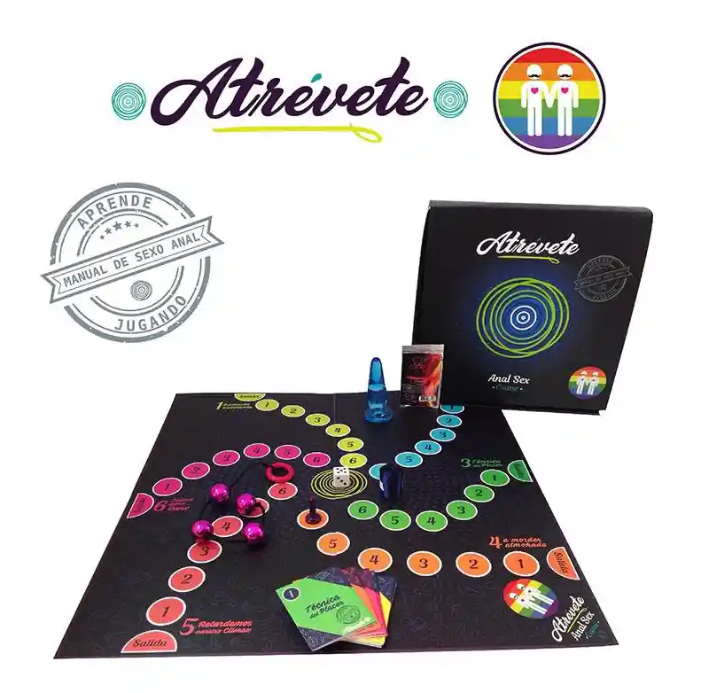 Juego de Sexo Anal disponible en versiones Hetero y Gay. Llegó el momento de explorar con tu pareja el manual para principiantes del Sexo Anal con el Juego Erótico Atrévete. Realiza las 6 pruebas de cada camino en orden, y ten presente que si llegas al clímax antes de terminar todas las pruebas, tendrás que cumplir una caliente y atrevida penitencia. Cada versión de Juego Erótico Atrévete incluye: 1 Tablero de juego 36 Tarjetas de pruebas 1 Ficha 1 Dado 1 Cinta de amarre 1 Lubricante anal 1 Bolas anales 1 Plug anal Recuerda aplicar siempre abundante lubricante sobre el ano, las bolas y el plug anal. Compra ahora en nuestra Tienda Erótica Virtual. Envíos a nivel nacional 100% seguros. Diferentes medios de pagos, excelentes precios y la mejor calidad.
