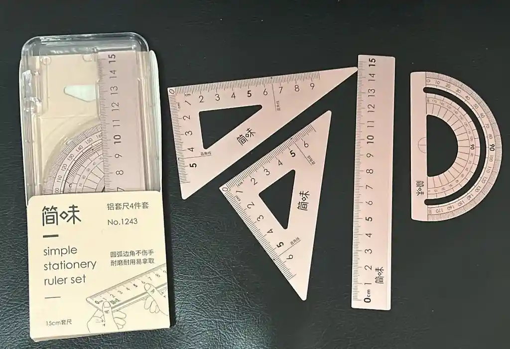 JUEGO GEOMETRICO / JUEGO ESCUADRAS PEQUEÑO METALICO ROSADO COD.1657-1