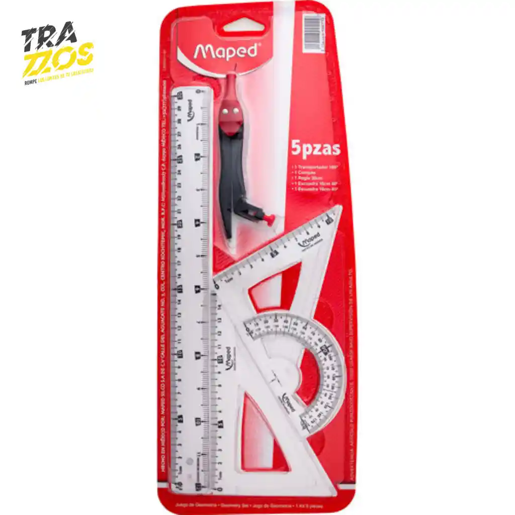El Juego Geométrico Maped es el compañero perfecto para estudiantes, artistas y amantes de la geometría. Incluye todo lo necesario para trazos precisos y limpios: regla, escuadra, transportador y compás, todo fabricado con materiales resistentes y de alta calidad. ✅ Ideal para uso escolar y profesional ✅ Diseño ergonómico y moderno ✅ Medidas claras y fáciles de leer ✅ Estuche práctico para llevar a todas partes ¡Haz que las matemáticas y el dibujo técnico sean más divertidos y organizados con Maped! 🧮✨