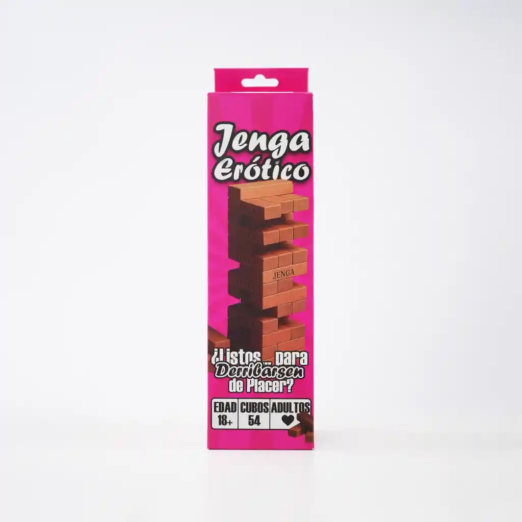 Jenga Erótico – Erotic Games El clásico juego de torre, ahora con un giro provocador. El Jenga Erótico está diseñado para convertir cualquier encuentro en una experiencia llena de deseo, risas y complicidad. Cada bloque incluye un reto sensual, una caricia atrevida o una propuesta que aviva la imaginación. Ideal para parejas que quieren salir de la rutina o para grupos que disfrutan de los juegos sin tabúes, este juego invita a explorar límites, fortalecer la conexión y descubrir nuevas formas de placer. Incluye: 54 bloques de madera con desafíos eróticos Actividades con distintos niveles de intensidad Instrucciones de juego Beneficios: Estimula la comunicación y la confianza Promueve el juego previo y la conexión íntima Ideal para regalar o sorprender en una noche especial ¿Estás listo para jugar hasta el último bloque? Cómo jugar – Cada persona saca una pieza sin tumbar la torre. – Si la pieza tiene un reto escrito, debe cumplirse de inmediato. – Si alguien derriba la torre, puede haber un “castigo erótico especial” —por ejemplo, cumplir un reto grupal, hacer un show, o quedar a disposición de otro jugador por 1 minuto. Contenido Incluye: 54 Bloques con retos Marca Erotic Games