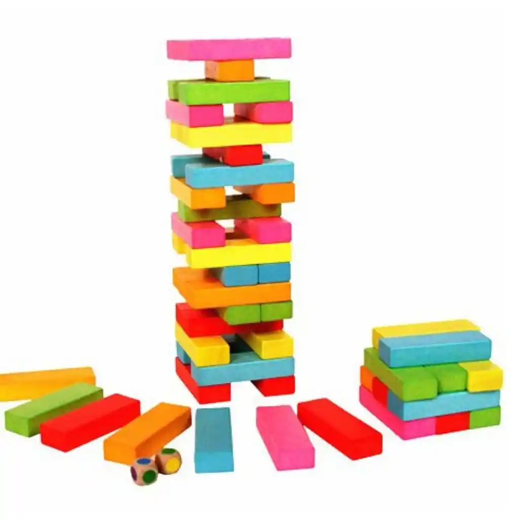 Saludos Comunidad, DISPONIBLE PARA LA VENTA Juego Jenga Clásico De Madera *Contiene 48 Bloques de Madera - 2 Dados *MEDIDAS: 23CM DE ALTO X 7CM DE ANCHO *MEDIDA DE CADA BLOQUE: 5CM LARGO X 2CM DE ANCHO Los jugadores se turnan para quitar un bloque a la vez de una torre construida con 48 bloques. Cada bloque eliminado se coloca en la parte superior de la torre, creando una estructura progresivamente más inestable. **COMPRE CON SEGURIDAD Y CONFIANZA** SOMOS ESPACIO DIDACTICO