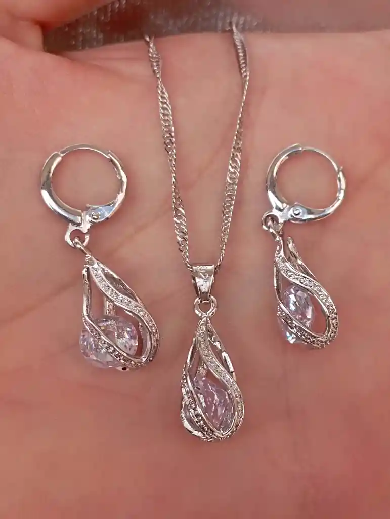 JUEGO EN PLATA 925 2 Aretes 1 Cadena 1 Dije Material: Plata Piedra: Circon