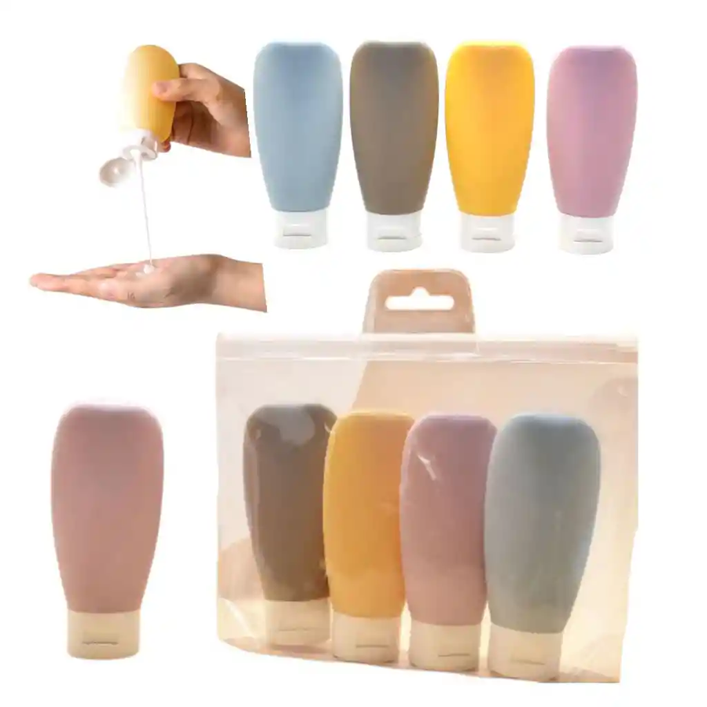Juego de Botellas Rellenables Perfecto para viajes Puedes rellenar todos los productos de aseo como shampo, acondicionador, crema corporal y productos faciales, para que no debas llevar envases grandes a tus viajes Material: PET + PP + PE Colores: Multicolor El paquete incluye: 4 Recipiente Botella 1 Bolsa de PVC