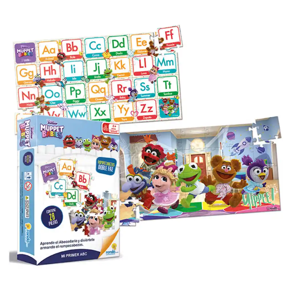 aprende el abecedario y diviértete armando el rompecabezas. desarrolla la asociación, motricidad fina, y concentración.contenido:28 pzastipo de juego: educativopersonaje: ‘muppetslargo: 17 cmancho: 40 cmaltura: 24 cmedad mínima recomendada: 4+