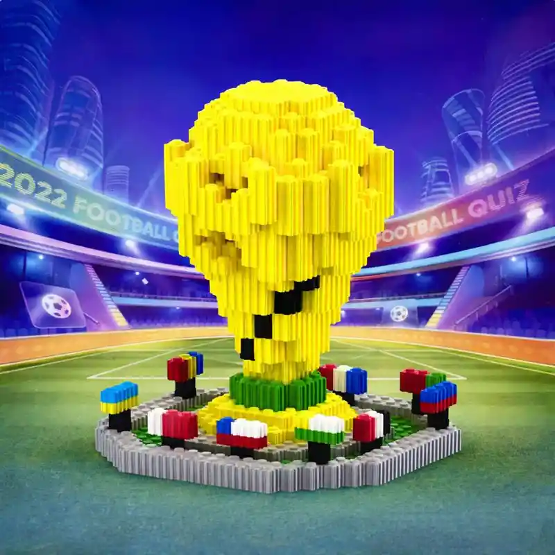 Juego Mini Bloques Figuras Armables Grandes Fútbol Incluye: 1 caja Diseño: Copa Mundo Cantidad de piezas: 1.500 (aprox.) Tamaño figura armada: 14 cm alto x 16 cm ancho x 15 cm largo (aprox.) Medidas de la caja: 20 cm largo x 4,5 cm ancho x 27,5 cm alto Características: - Cada figura es un reto entretenido que ofrece horas de diversión mientras se arma pieza por pieza. - Ideal para estimular la concentración, la paciencia y la motricidad fina de niños y adultos. - Perfecto como regalo para fanáticos del fútbol, coleccionistas o amantes de los bloques armables.