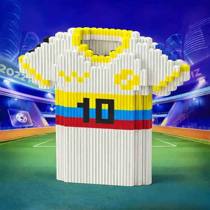 Juego Mini Bloques Figuras Armables Grandes Fútbol Incluye: 1 caja Diseño: Camiseta James Cantidad de piezas: 1.500 (aprox.) Tamaño figura armada: 14 cm alto x 16 cm ancho x 15 cm largo (aprox.) Medidas de la caja: 20 cm largo x 4,5 cm ancho x 27,5 cm alto Características: - Cada figura es un reto entretenido que ofrece horas de diversión mientras se arma pieza por pieza. - Ideal para estimular la concentración, la paciencia y la motricidad fina de niños y adultos. - Perfecto como regalo para fanáticos del fútbol, coleccionistas o amantes de los bloques armables.