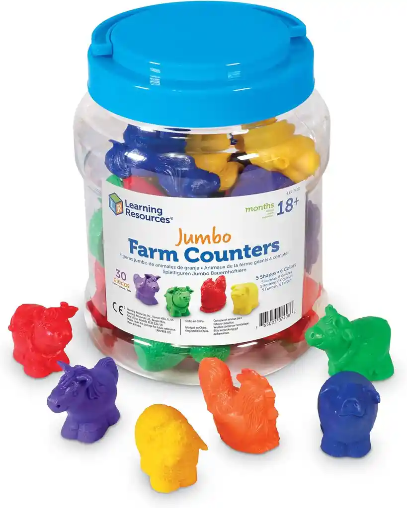 Empaque de regalo y tarjeta sin costo adicional, escríbenos al finalizar la compra. 18 meses+ ¡Deja que la diversión agrícola crezca con nuestros Contadores Agrícolas Gigantes! Este conjunto de mostradores es perfecto para pequeños granjeros en formación, ya que refuerza habilidades clave como contar, clasificar, crear patrones y reconocer colores. Con cinco amigables animales (vaca, caballo, gallo, cerdo y oveja) en seis colores vibrantes, los niños disfrutarán agarrando estos contadores de gran tamaño mientras exploran el emocionante mundo de la granja. Estos contadores agrícolas no solo son ideales para el aprendizaje estructurado, sino que también se pueden utilizar como títeres para los dedos, llevando la diversión y el juego imaginativo a un nivel completamente nuevo. Los pequeños granjeros pueden representar historias y crear sus propias aventuras en el mundo agrícola mientras disfrutan de las texturas suaves y colores llamativos de estos adorables contadores. Con los Contadores Agrícolas Gigantes, el aprendizaje se vuelve interactivo y emocionante, brindando a los niños la oportunidad de cultivar habilidades educativas esenciales de una manera divertida y creativa. Tamaño: 15 x 15 x 12cm