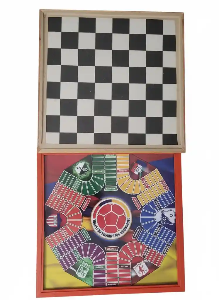 JUEGO - PARQUES DE 6 PUESTOS DOBLE CARA CON AJEDREZ (INCLUYE FICHAS)