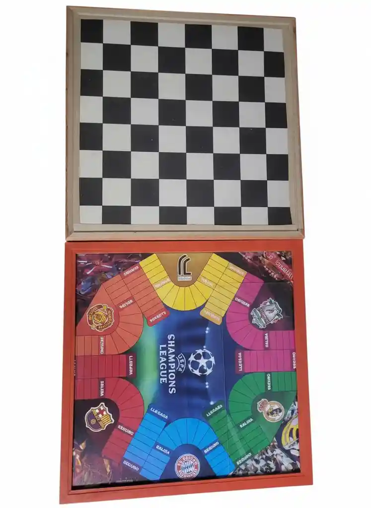 JUEGO - PARQUES DE 6 PUESTOS FUTBOL DOBLE CARA CON AJEDREZ (INCLUYE FICHAS)