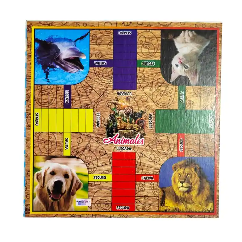Parques de Madera Mini Doble Incluye: - 1 tablero mini de 4 puestos/escalera - 12 fichas sencillas y 2 dados Diseño: Animales Tamaño: Mini Medidas: 20 cm x 20 cm Características: - Tablero doble: Juega Parqués de 4 puestos o el clásico Escalera en el mismo tablero. - Diseño compacto, ligero y fácil de transportar. - Elaborado en madera para mayor resistencia y durabilidad. - Ideal para viajes, reuniones familiares y tardes de diversión. Un juego de mesa tradicional colombiano que nunca pasa de moda, ahora en un práctico formato portátil para disfrutar en cualquier lugar.