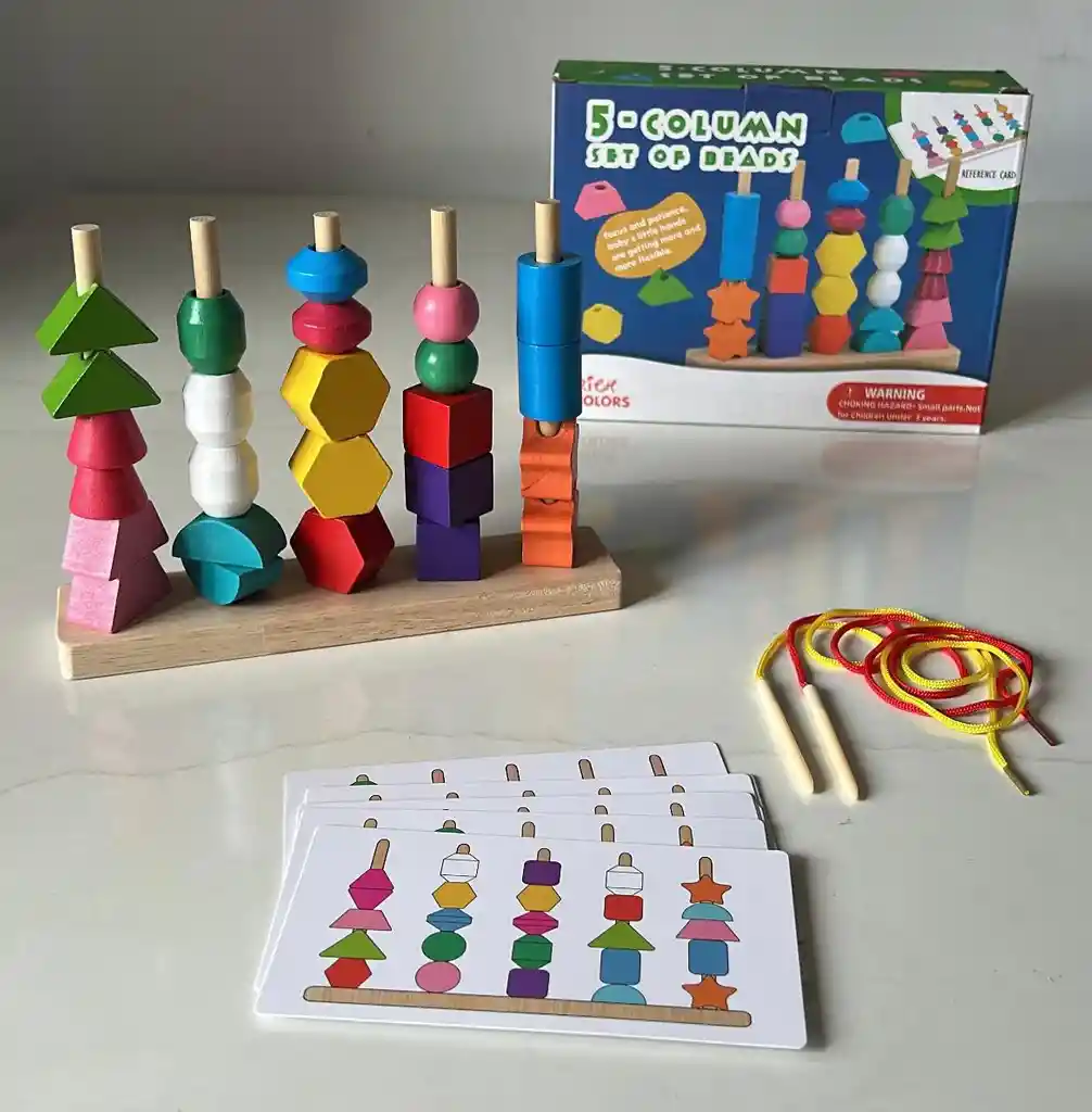 JUEGO PIRAMIDE MADERA FIGURAS GEOMETRICAS 5 COLUMNAS COD.4623