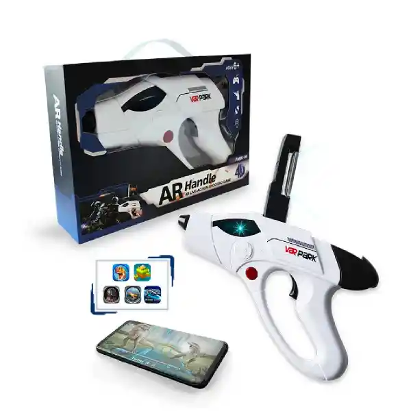Descarga cualquiera de las APPs compatibles o sigue las instrucciones que encuentras en el manual del usuario (incluido en la caja). 2.Activa el bluetooth de tu dispositivo. 3. Con la ayuda del destornillador (incluido en la caja), retira la tapa del compartimiento de las baterías e introduce dos baterías AAA alcalinas. Ten en cuenta los símbolos de los polos positivos (+) y negativos (-) para colocarlas en la posición correcta. (No se recomiendan pilas recargables). 4. Vuelve a colocar la tapa en su sitio. 5. Con la ayuda de tu pulgar levanta el soporte hasta que quede fijo. 6. Aprieta el gatillo hasta que la luz led encienda. 7. Ubica el celular en el soporte de la pistola y abre la APP compatible que desees. La pistola se conectará con la APP automáticamente.