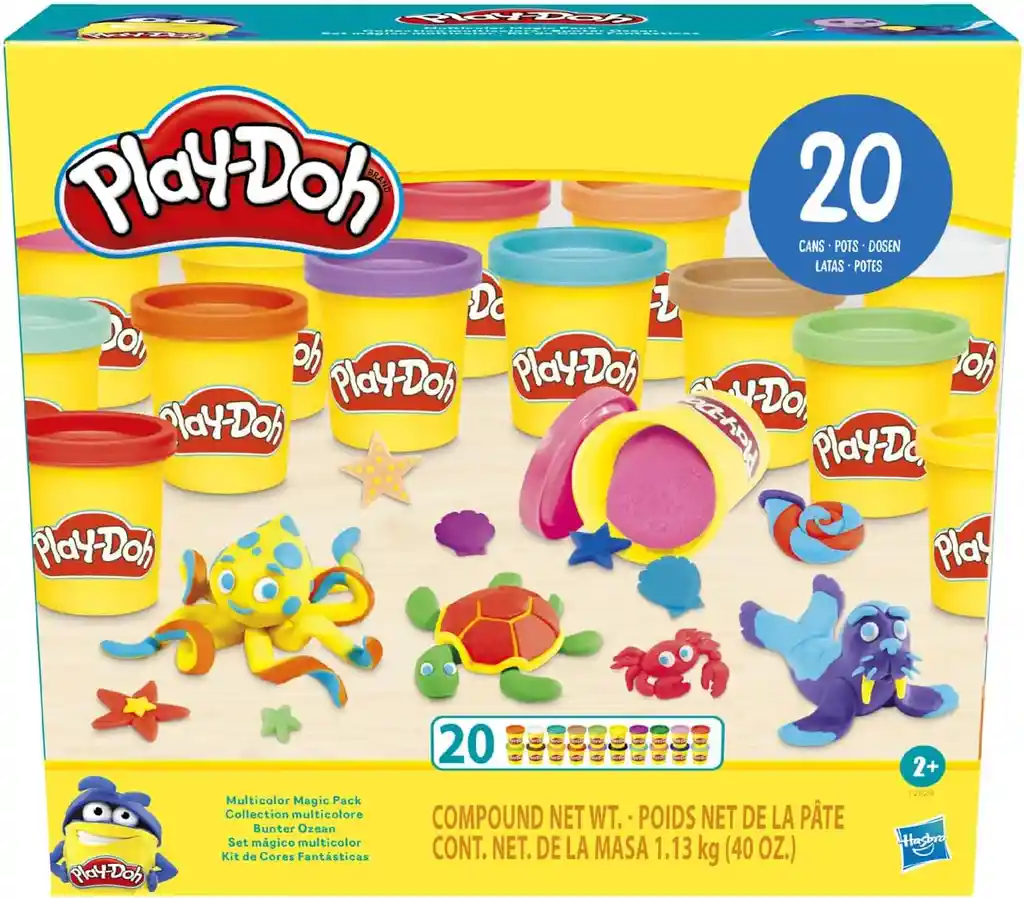 3 años + El Set Multicolor Mágico Play-Doh es un fantástico paquete de 20 envases en una deslumbrante variedad de colores. Cada envase contiene una porción de masa Play-Doh de alta calidad, suave y fácil de manejar, perfecta para que los niños exploren su creatividad sin límites. Este set es ideal tanto para principiantes como para niños con experiencia en el modelado. Los envases individuales facilitan la organización y el almacenamiento de los colores, asegurando que cada uno se mantenga fresco y listo para usar en cualquier momento. Fabricado con la calidad y seguridad que caracteriza a Play-Doh, cada envase está hecho de ingredientes no tóxicos, garantizando un juego seguro y entretenido para los más pequeños. Tamaño: 21x 20x 8cm