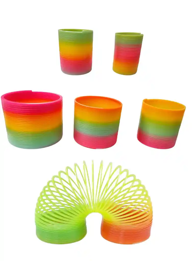 Bobina de resorte grande gigante de arco iris de 7 cm recogido son 5 tamaño diferentes cuenta con vibrantes colores arcoíris. Nuestra gran bobina de resorte, se estira mucho y vuelve al instante a la forma. Funciona increíblemente en escaleras y perfecto para niños pequeños y niños ¡Increíble! Muy divertido: gran diversión para toda la familia. Este juguete clásico de tamaño jumbo impresionará a tus hijos y amigos, manteniéndolos ocupados durante un sinfín de horas de diversión. Todo el mundo se divertirá jugando con este juguete mágico de primavera. ¡Agarra dos y mira cómo corren por las escaleras! Edad recomendada a partir de 2 años