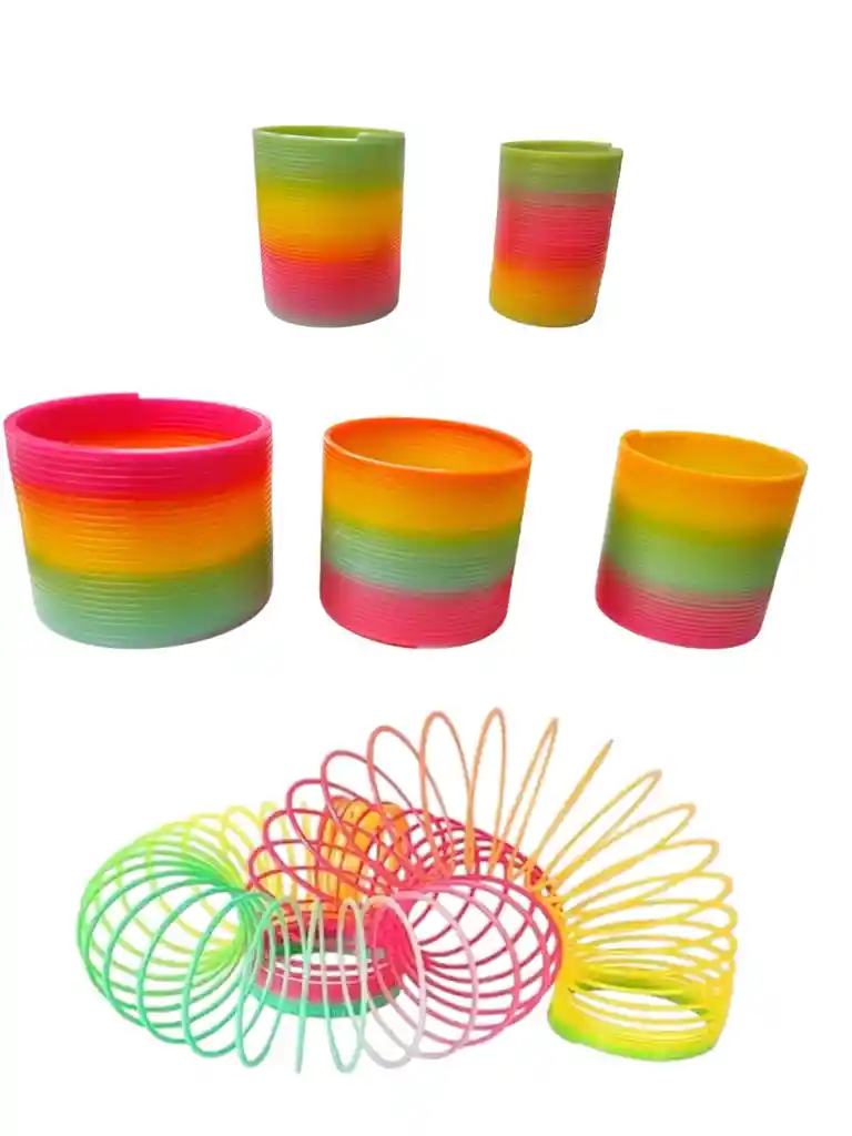 Bobina de resorte grande gigante de arco iris de 7 cm recogido son 5 tamaño diferentes cuenta con vibrantes colores arcoíris. Nuestra gran bobina de resorte, se estira mucho y vuelve al instante a la forma. Funciona increíblemente en escaleras y perfecto para niños pequeños y niños ¡Increíble! Muy divertido: gran diversión para toda la familia. Este juguete clásico de tamaño jumbo impresionará a tus hijos y amigos, manteniéndolos ocupados durante un sinfín de horas de diversión. Todo el mundo se divertirá jugando con este juguete mágico de primavera. ¡Agarra dos y mira cómo corren por las escaleras! Edad recomendada a partir de 2 años