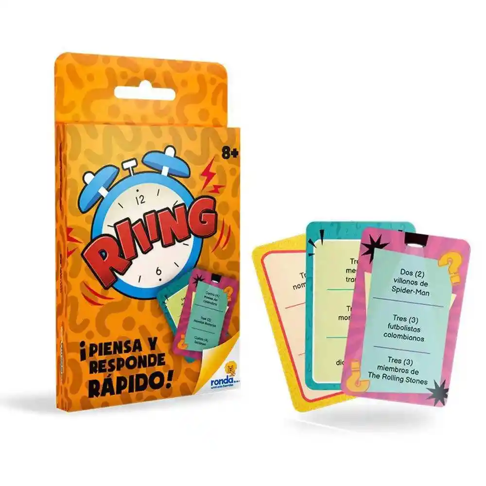 Diviértete en familia y con amigos con este espectacular juego de mesa Riiing, Ayudan al desarrollo de sus capacidades motoras, mentales y sensoriales. Desarrollan la concentración, la memoria, la observación y la imaginación. ¡Piensa y responde rápido! Diviértete con tu familia y amigos respondiendo preguntas rápidas.