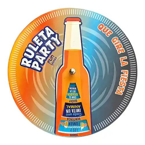RULETA PARTY – El juego que hará girar la fiesta Convierte cualquier reunión en una noche inolvidable. RULETA PARTY es el juego perfecto para amigos, fiestas, cumpleaños, reuniones en casa, pre-copas y cualquier plan donde quieras romper el hielo y reírte sin parar. ¿Cómo se juega? Escoge una botella de tu licor favorito. Ponla sobre la ruleta. Gírala. Sigue las instrucciones y a divertirse! ¡Así de fácil! RULETA PARTY es fácil de entender, fácil de jugar y súper divertida. Ideal para grupos de cualquier tamaño. Incluye: 1 Ruleta Party tamaño estándar Diseño resistente y colores llamativos Instrucciones claras impresas Apto para mayores de 18 años