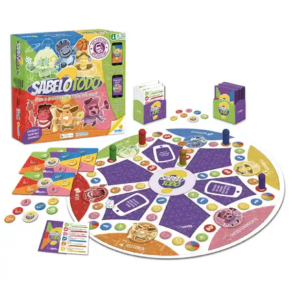 SE EL PRIMER JUGADOR EN COMPLETAR UNA FICHA CON LOS SEIS QUESITOS DE DIFERENTES TEMAS, RESPONDIENDO CORRECTAMENTE LAS PREGUNTAS DE HISTORIA, DEPORTE, ARTE, GEOGRAFÍA, ENTRETENIMIENTO Y CIENCIA.Contenido:* 1 Tablero de juego* 400 Tarjetas con 2400 preguntas y respuestas* 2 Porta Tarjetas* 6 Medalleros (7 Medallas pormedallero)* 6 Fichas* 1 DadoTipo de Juego: TriviaPersonaje: RondaLargo: 27 cmAncho: 6.5 cmAltura: 27 cmEdad mínima recomendada: 12+