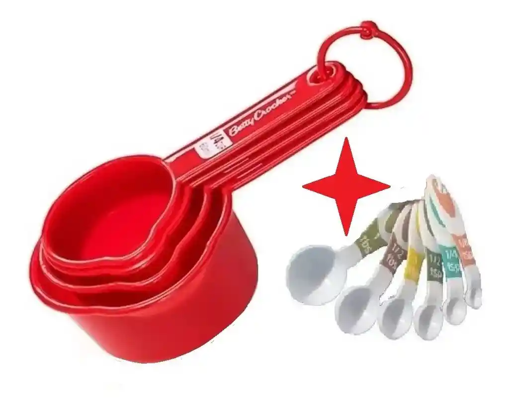 Original betty crocker Super prácticos medidores para cocina y respostería Descripción: Set Tazas Medidoras X5 Importado Betty Crocker 5 piezas por set. El set incluye medidores con las siguientes características: 1 taza, 3/4 taza, 1/2 taza, 1/3 taza 1/4 taza Hecho de plástico duradero, especial para comidas. Color: Rojo.