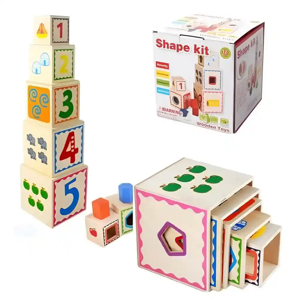 Este set de cubos con figuras geométricas es ideal para que los más pequeños desarrollen habilidades mientras se divierten encajando las formas. Además, cuenta con números pintados y figuras que les permiten explorar y aprender de manera sencilla la operación de sumar, fomentando su desarrollo cognitivo y el aprendizaje temprano de las matemáticas. Ficha Técnica: Dimensiones: 12 cm x 12 cm x 12 cm Material: Madera Edad recomendada + 3 Años Certificado de conformidad: SL-CS-210044 Referencia: DM589 ** _Para defectos de fábrica o retractos: \_Por favor revise el producto apenas lo reciba y antes de usarlo. No aplican ley de retracto o defectos de fábrica luego de usar el producto. Se manejan máximo 5 días para reportar defectos de fábrica (por ejemplo, producto funciona mal, piezas faltantes, rotas, etc). Para hacer efectiva la devolución el producto debe devolverse con el empaque original, el cual debe estar en buen estado, incluir todos los documentos y las partes completas y sin daños.