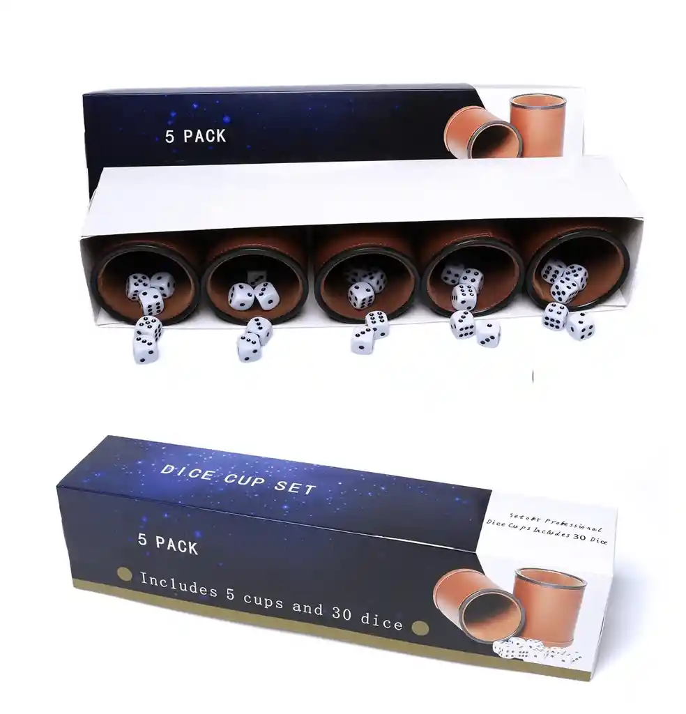 Empaque de regalo sin costo adicional, escríbenos al finalizar la compra. 14 años + Disfruta de tus juegos de dados favoritos con este elegante set de 5 vasos de cuero y 30 dados incluidos. Cada vaso está forrado con un suave interior de fieltro, proporcionando un lanzamiento silencioso y suave, perfecto para cualquier juego de mesa. El diseño de cuero sintético de alta calidad le da un toque sofisticado y duradero, ideal para partidas en familia o con amigos. Los dados, hechos de material resistente, garantizan durabilidad y precisión en cada lanzamiento. Este set es perfecto para una variedad de juegos de dados, desde Yahtzee hasta póker de dados. Su presentación en caja hace que sea un regalo ideal para los amantes de los juegos de mesa. Lleva tus partidas al siguiente nivel con este set de vasos de dados de lujo. Tamaño: 8x 7x 1cm