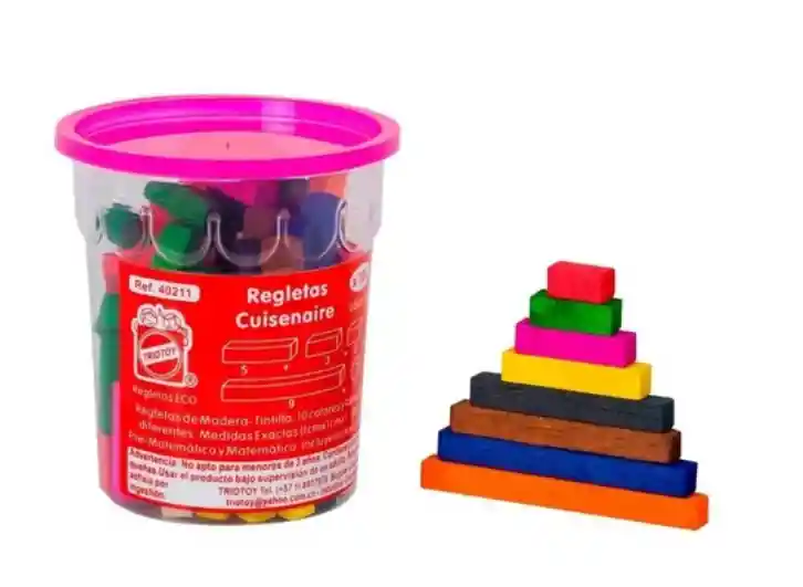 Juego Triotoy Regleta Matemática Cuisinaire x 100 Uds Regletas de madera en 10 colores. Dimensiones: 1 x 1 cm en tamaños diferentes. Incluye instrucciones.