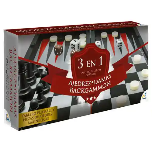 Empaque de regalo sin costo adicional, escríbenos al finalizar la compra. 8 años + ¡Completa tu colección de juegos para esas tardes con familiares y amigos con este Divertido Set de juegos 3en 1 que incluye Backgammon, Damas y Ajedrez con piezas ¡Magnéticas! Vienen en un práctico tablero plegable para conservar cada una de sus piezas.