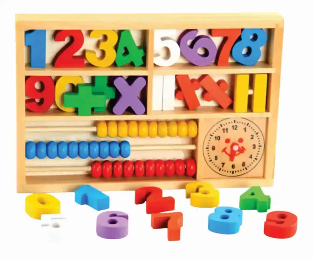 juguete educativo diseñado para ayudar en el desarrollo cerebral de los niños a través de juegos y rompecabezas. Es ideal para niños mayores de 3 años y está hecho de madera resistente y duradera. Este juego de mesa Montessori se enfoca en el aprendizaje de cálculos matemáticos básicos, como sumas, restas, multiplicaciones y divisiones. La caja de aprendizaje contiene un reloj y un ábaco para que los niños puedan usarlos en sus operaciones matemáticas. Este juguete educativo es una excelente manera de aumentar la interacción entre padres e hijos, ya que puede ser utilizado por adultos y niños juntos. Además, ayuda a los niños a mejorar su habilidad matemática, percibir la realidad y apreciar tamaños, direcciones y relaciones espaciales.