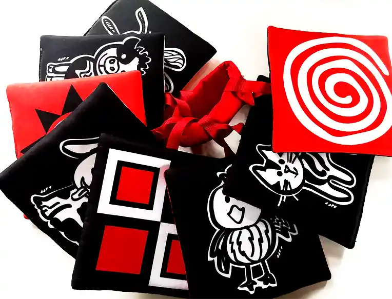 Empaque de regalo sin costo adicional, escríbenos al finalizar la compra. 3 meses + El set de tarjetas de tela es un juego encantador y seguro para tu bebé. Estas tarjetas están elaboradas con materiales no tóxicos y de fácil lavado, asegurando su durabilidad y seguridad. Cada tarjeta del set cuenta con un relleno suave que permite que sean fácilmente manipuladas por las manos del bebé. Además, tienen papel en su interior para estimular el sentido del oído, generando sonidos suaves al ser manipuladas. Las tarjetas están estampadas con diseños de animales en una cara y patrones geométricos en colores blanco, negro y rojo en el respaldo. Estos colores y patrones generan un alto contraste entre sí, estimulando la visión del bebé y capturando su atención. El juego de tarjetas de tela ofrece una variedad de beneficios para el desarrollo del bebé. Estimulan la visión, promoviendo la percepción visual y la atención. También estimulan el oído y fomentan la exploración táctil a través de su suave relleno. Tamaño: 12 x 12 x 5cm