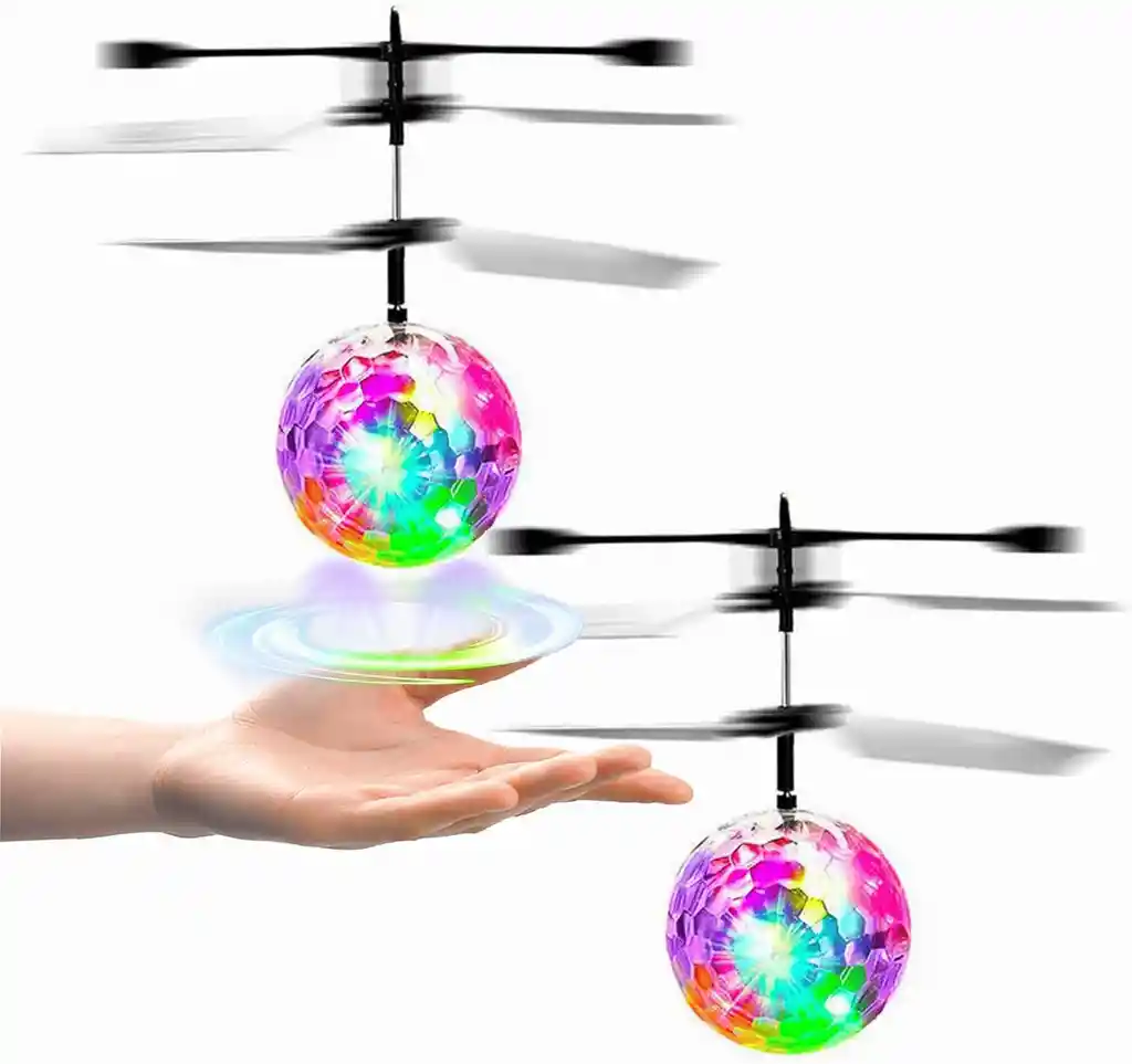 🔮 Bola Voladora Flotante y Luminosa "Flying Spinner" Este es un juguete volador único que combina un diseño esférico con un sistema de hélices internas para flotar y moverse. Su característica principal es la iluminación LED RGB que lo convierte en un espectáculo visual al volar, especialmente en la oscuridad. Se controla a mano, ya sea con gestos o lanzándolo y recibiéndolo, creando un juego interactivo de lanzamiento y captura. ✨ Características Clave en Listado Diseño: 🌐 Forma de esfera o jaula protectora con hélices ocultas en el interior. Iluminación: 🌈 Equipado con luces LED RGB brillantes que giran y crean un espectacular rastro de color en movimiento. Mecanismo: Utiliza hélices internas y tecnología de vuelo para levitar, haciéndolo parecer que flota mágicamente. Control: 🖐️ Se controla a mano (lanza y regresa), fomentando la interacción y las acrobacias.