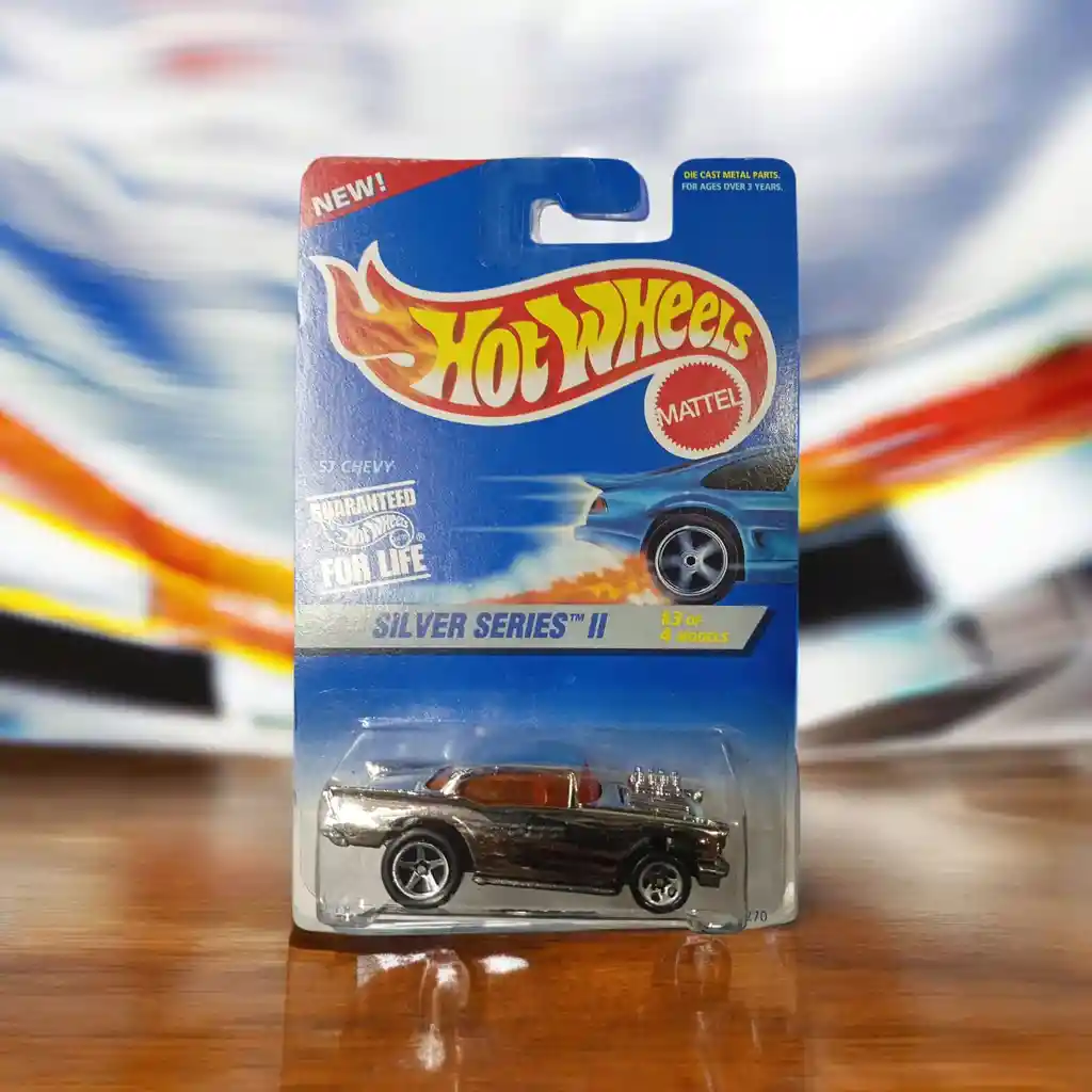 🚗 Juguete Carro Hot Wheels Original - #422 Silver Series II ‘57 Chevy HTF (Primeras Ediciones 1995) ✨🔥 Una pieza clásica, difícil de encontrar (HTF – Hard To Find) y muy valorada por coleccionistas de Hot Wheels, el legendario ‘57 Chevy en su elegante edición Silver Series II (1995) 🏁💨 🔹 Marca: Hot Wheels 🔹 Modelo: ‘57 Chevy 🔹 Número de Coleccionista: #422 🔹 Serie: Silver Series II ⚙️ 🔹 Año: 1995 🔹 Tipo: Primeras Ediciones 🏎️ 🔹 Detalles: Acabado plateado brillante ✨, rines cromados 🛞, diseño clásico de los años ’50 💫 y empaque original 🆕 Perfecto para coleccionistas exigentes, exhibición en vitrina o completar tu colección vintage de los 90s 🏆 💥 ¡‘57 Chevy Silver Series II #422 — elegancia, rareza y colección en una miniatura legendaria! 🩶🚀