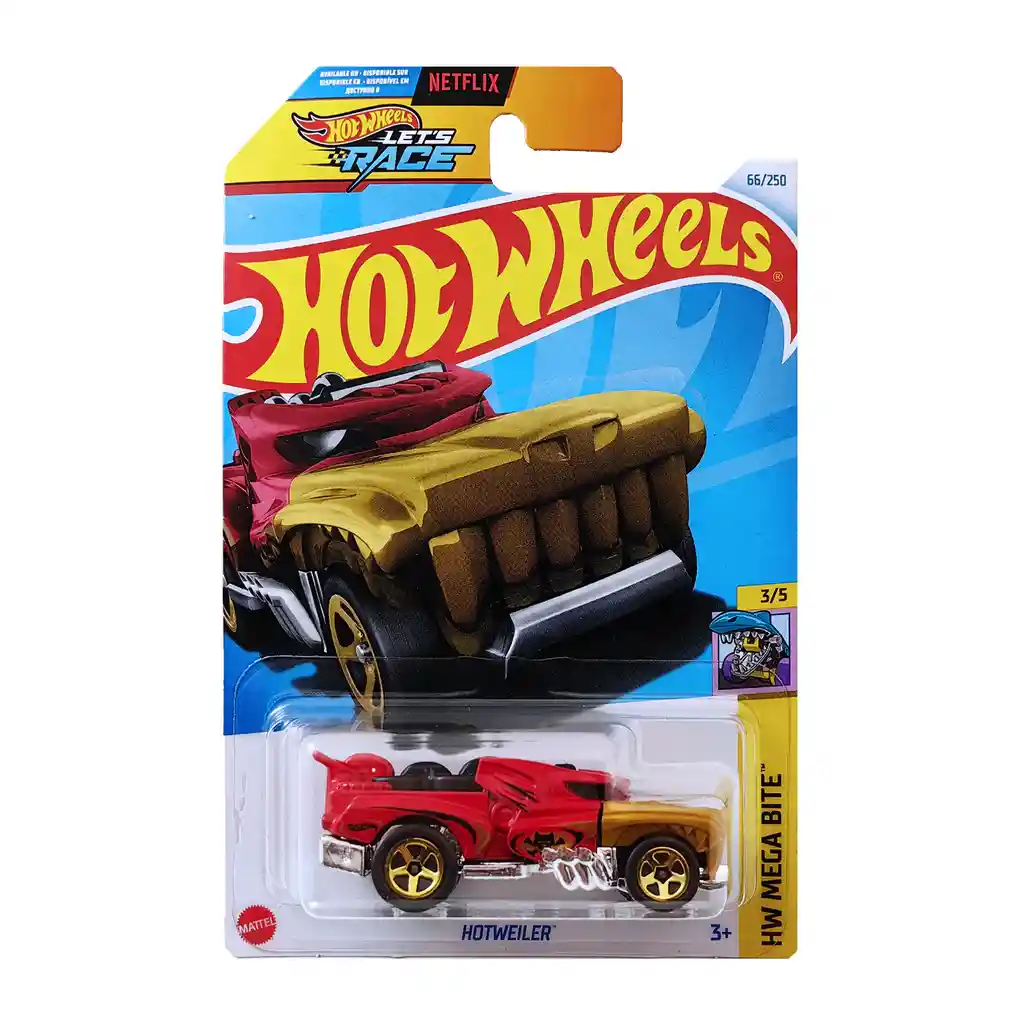 Empaque de regalo sin costo adicional, escríbenos al finalizar la compra. 3 años + El Hot Wheels Hotweiler es un auto de colección que destaca por su diseño audaz y feroz. Con una carrocería roja y detalles dorados, este modelo captura la esencia de un verdadero depredador sobre ruedas. El diseño agresivo con grandes dientes en el frente y el logotipo de un perro feroz en el costado hacen de este auto una pieza única y deseada por los coleccionistas. El modelo está fabricado a escala 1:64, ideal para exhibir o para jugar. Su carrocería robusta y los detalles precisos en el acabado garantizan durabilidad y realismo. Las llantas doradas con un toque deportivo completan el aspecto agresivo y llamativo del Hotweiler, asegurando que se destaque en cualquier colección. Perfecto para los aficionados de Hot Wheels y los coleccionistas de autos en miniatura, el Hotweiler es una excelente adición a cualquier colección. Ya sea que se utilice para exhibición o para carreras en pistas de Hot Wheels, este modelo ofrece diversión y calidad garantizada. Tamaño: 7x 4x 4xcm
