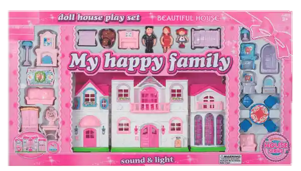 Casa Con Luz y Sonido Incluye 20 Accesorios Para Decorar la Casa. Muebles, Un Perro, Una Niña, el Papá y La Mamá. Dimensiones 48.5 x 88 x 10 cm