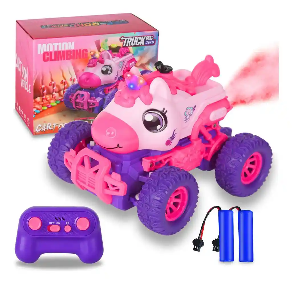Adorable auto RC con temática de unicornio: Deleita a tu pequeño con un encantador auto de control remoto de unicornio que combina la ternura de un unicornio con la emoción de un camión monstruo. Luces LED vibrantes y efecto de pulverización fría: este camión monstruo Unicorn RC cuenta con luces LED vibrantes en su parte superior con luz de 7 colores que se iluminan mientras su hijo conduce, junto con una función de pulverización interactiva que agrega un efecto realista similar a la niebla, mejorando la diversión y creando una experiencia de juego cautivadora. Maestría todo terreno para aventuras sin fin: diseñado para abordar varias superficies, desde césped hasta grava, este camión monstruo de control remoto todo terreno ofrece diversión imparable. Ya sea en interiores o exteriores, tu hijo puede navegar por los terrenos más difíciles, asegurando horas de juego aventurero dondequiera que vaya. Construcción duradera para el juego activo: fabricado con materiales duraderos de alta calidad, este camión monstruo RC está construido para soportar el duro y la caída del juego entusiasta. Su diseño robusto garantiza que pueda manejar golpes, choques y todo tipo de aventuras sin perder el ritmo.