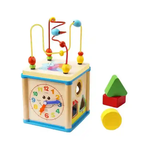 Empaque de regalo sin costo adicional, escríbenos al finalizar la compra. 2 años + Este cubo didáctico de madera es el compañero ideal para acompañar el aprendizaje de los más pequeños mientras se divierten de verdad. Reúne varias actividades en un solo juguete, con laberinto de cuentas, reloj, encajables y figuras de colores que ayudan a estimular la coordinación, la motricidad fina, el reconocimiento de formas y colores, y la lógica desde temprana edad. Su diseño llamativo, resistente y seguro lo convierte en una excelente opción para regalar o sumar al espacio de juego en casa. Es un juguete pensado para mantener a los niños entretenidos por más tiempo, mientras desarrollan habilidades clave de forma natural y dinámica. Perfecto para padres que buscan diversión con valor educativo, porque entretener está bien, pero aprender jugando les resuelve mejor el trabajo a todos. Tamaño: 30x 16x 16cm